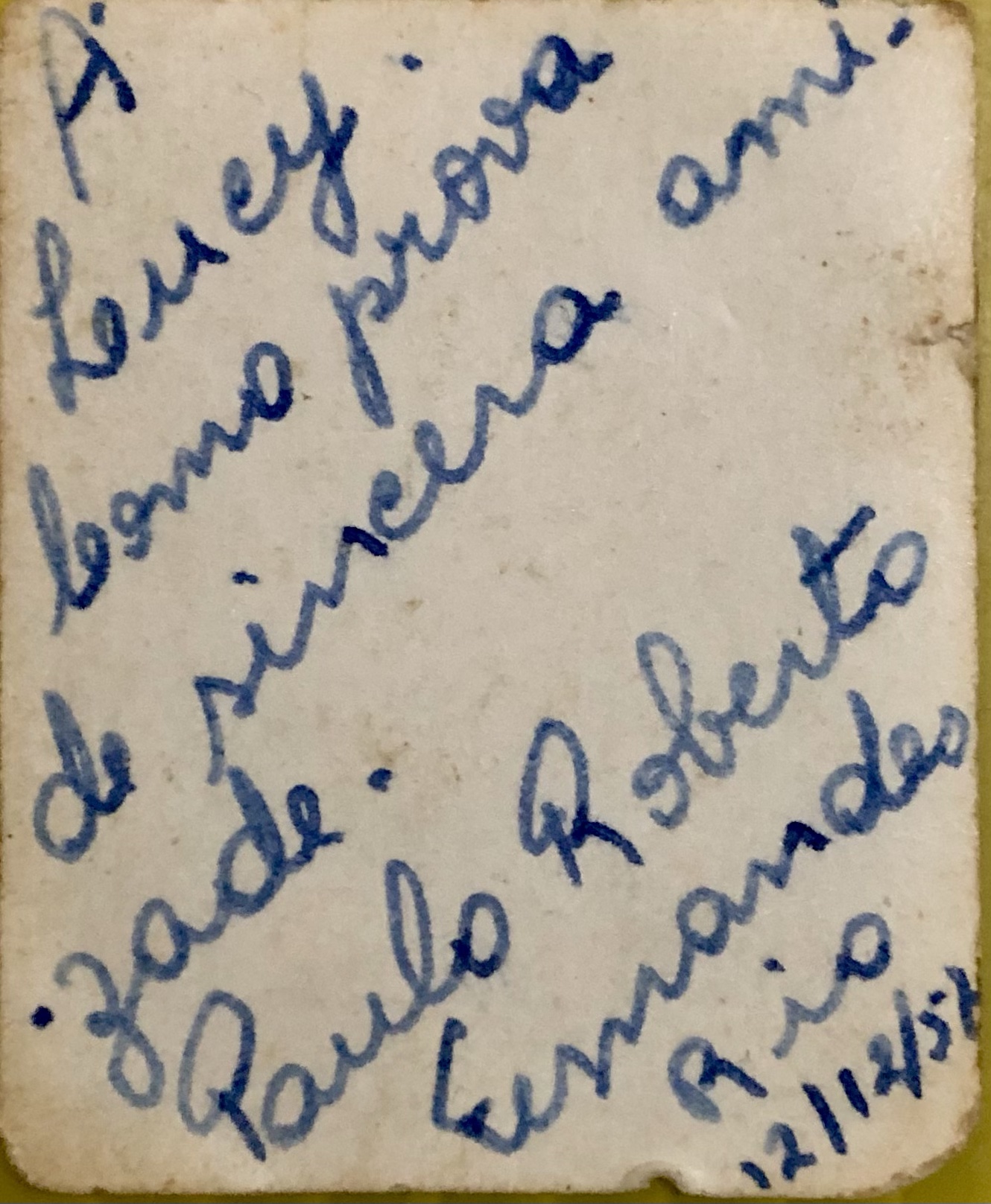 “A colega Lucy uma lembrança daquela que tanto a quer bem”.